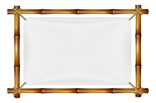 Bamboo frame from sticks and rope in cartoon style, border isolated on white background. Tribal panel, game menu.