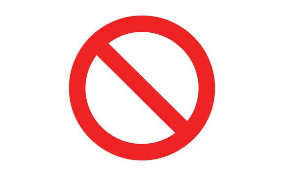 red prohibition symbol with diagonal line on white background, minimalist icon for restrictions, forbidden actions, or warning signs