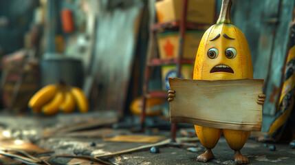 cartoon banana  holding a sign "It's Ok, I'm Delicious"