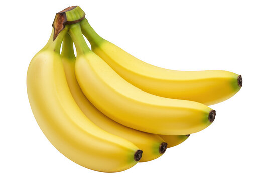 Freshly ripe yellow bananas isolated on transparent background showing detailed texture and bright colors