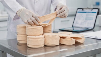 Medium shot showing quality inspection of medical elastic bands focusing on texture and flexibility to ensure comfort and support in healthcare applications.