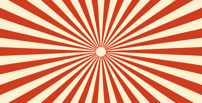 Radial sunburst background. Vintage wallpaper with rays in circus style, vector illustration