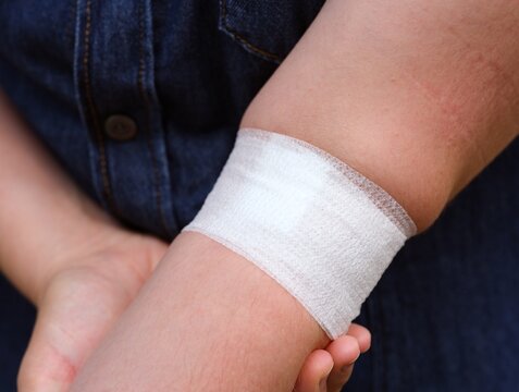 Female hand elastic bandage injury