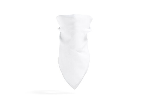 Blank white bandana neck wrap mockup, png, transparent background, 3d rendering. Empty fabric tied balaclava for western protection mock up, cut out.