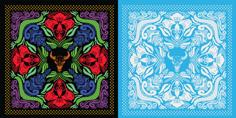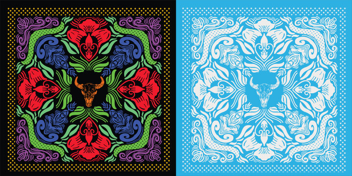 Seamless pattern based on square ornament paisley Bandana Print for boys and girls. motive for print on fabric or papper