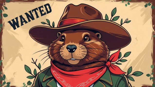 bandito bobrito, beaver in a cowboy hat wanted as a bandit