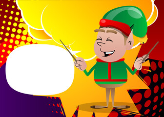 Christmas Elf orchestra conductor. Vector cartoon character illustration of Santa Claus's little worker, helper.
