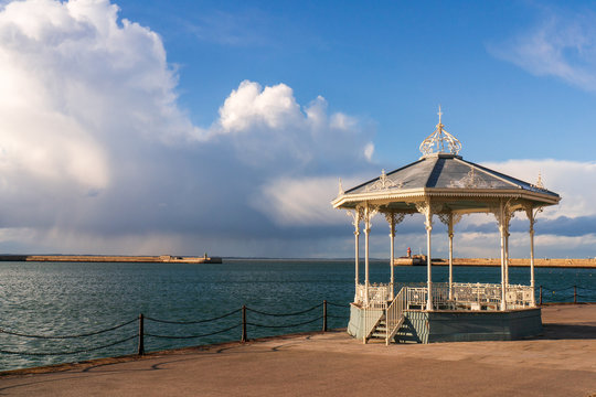 The Dun Laoghaire bandstand landmark located on the East pier of the harbour in Dublin, Ireland. Victorian cast iron filigree bandstand.