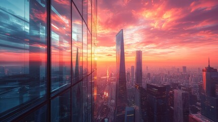 Desain arsitektur modern bangunan kantor ini menampilkan kemewahan pada pintu masuk aula, koridor, dan ruang lift dengan dinding serta lantai kaca yang berpanel