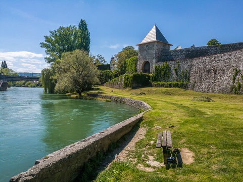 Park along the river Vrbas beneath the walls of Kastel Fortress in Banja Luka, Bosnia and Herzegovina - Image