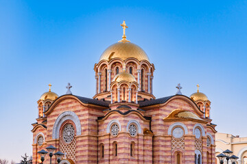 Beautiful Christ the Savior Orthodox Cathedral in Banja Luka against a sunny blue sky