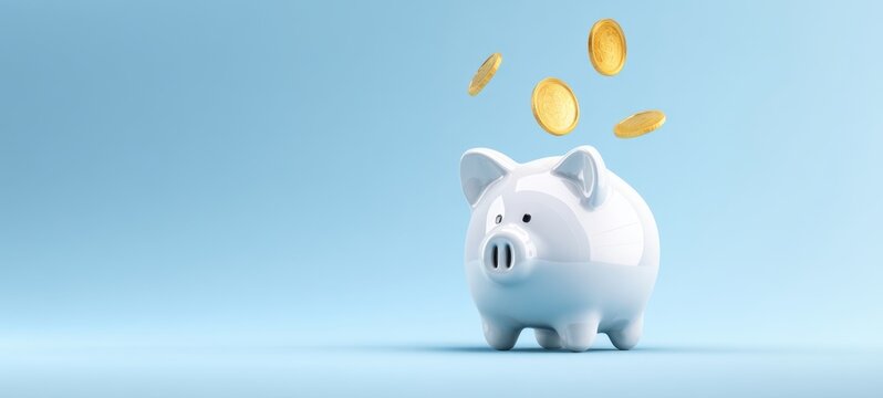 The piggy bank collecting coins in a bright and minimalistic setting.