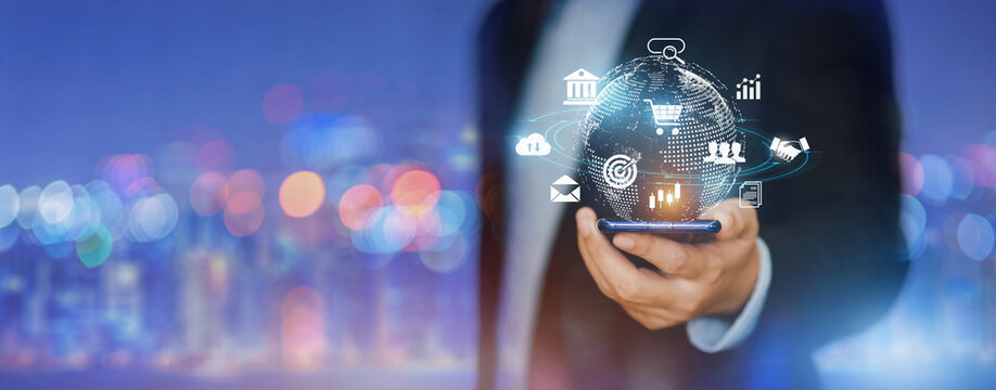 Businesspeople holding credit card and using laptop. online shopping concept, Banner cover design.