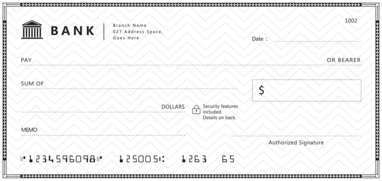 Blank bank cheque. Personal desk check template