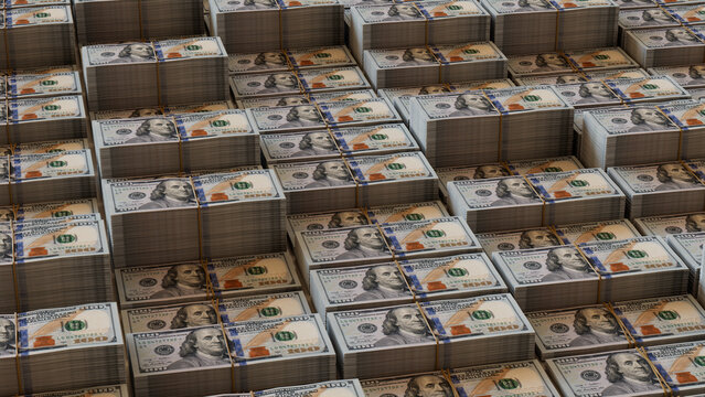 big pile of money american dollar bills without shadow 3d