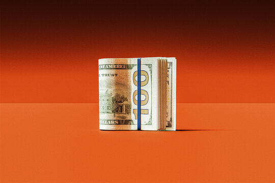 Gangster roll, bankroll, money roll, bundle of dollar money cash. Currency banknotes