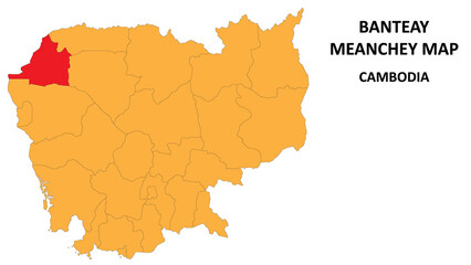 Banteay Meanchey State and regions map highlighted on Cambodia map.
