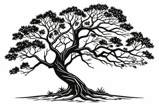 Tree of Life Family vector logo design, branches, Leaves Roots Oak Banyan Tree
