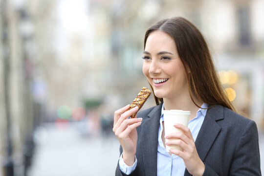 Happy woman enjoying chocolate bar with joyful expression