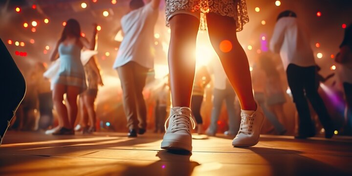 AI Generated. AI Generative. Night club life people are dancing on bar pub stage. Funny motion party time. Graphic Art