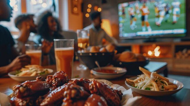 Group of friends gathered to watch a sporting event. They ordered chicken wings