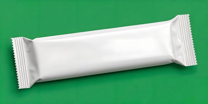 A clean and modern mockup of a blank white snack bar wrapper placed on a vibrant green background. Ideal for branding, product packaging design, and promotional materials.