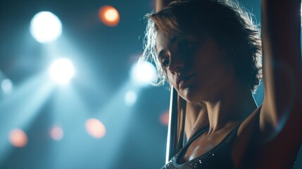 A dancer showcases skills on a pole at a nightlife venue. The scene has colorful lights and a vibrant atmosphere, typical of late-night entertainment spots
