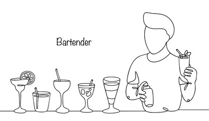 Bartender design with boston shaker in hands for bartending school. Vector emblem set of chromed metal equipment or cocktail bar tool for barman or barkeep