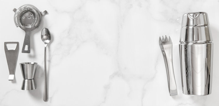 bar tools and cocktail shaker