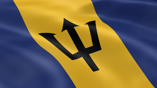 Barbadian flag Closeup 1080p Full HD 1920X1080 footage video waving in wind. National ‎‎‎Bridgetown‎‎ 3d Barbadian flag waving. Sign of Barbados seamless loop animation. Barbadian flag HD resolution B
