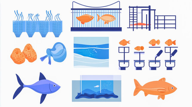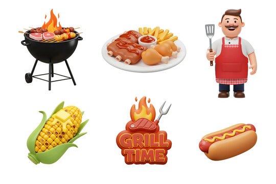 Barbecue and grill vector icons set with food, flames, and utensils illustration