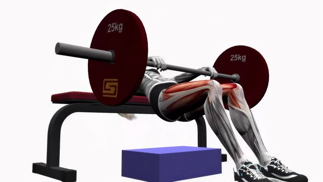 3D illustration animation of a fitness female model doing the barbell hip thrust workout
