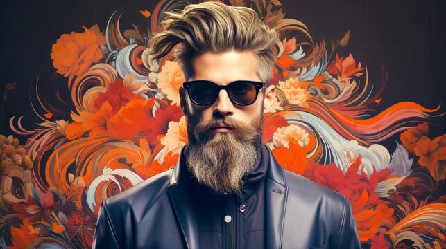 Bold mustache graphic celebrating facial hair styles