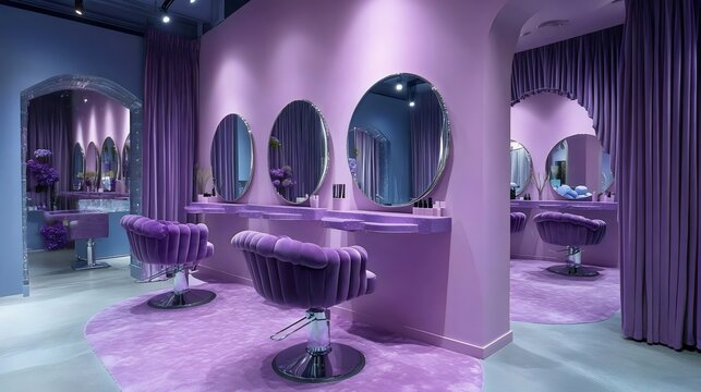 Sleek and Modern Hair Salon with Stylish Barber Chairs and Symmetrical Mirror Layout in Monochromatic Black and White Color Scheme  The Empty