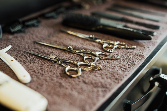 Classic barber shop setting with traditional shaving tools