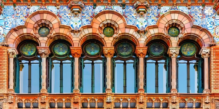 Iconic Palace of Catalan Music in Barcelona Spain showcasing stunning modernist architecture and intricate details. Concept Architecture, Modernist, Iconic Landmarks, Barcelona, Spain