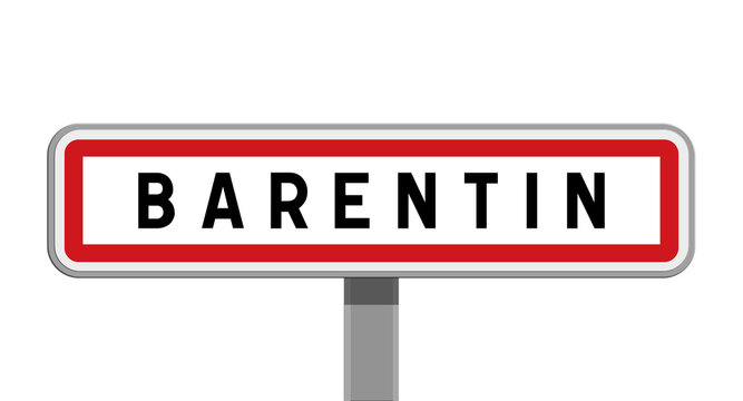 Panneau sur poteau central de ville de Barentin, Seine-Maritime