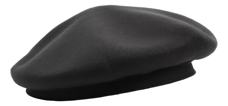 Black french cap beret side view isolated on white