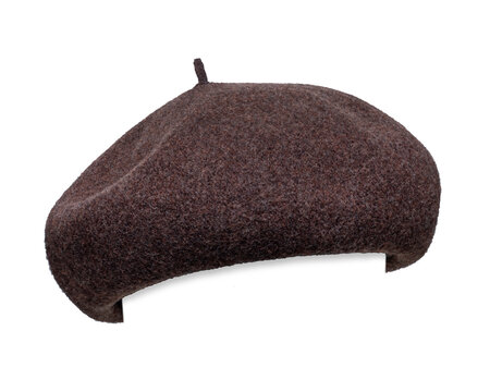Posh attire and hip vintage fashion conceptual idea with red colour beret or french bonnet isolated on white background and clipping path cutout using ghost mannequin technique