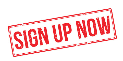 Sign Up Now. Red rubber stamp on white