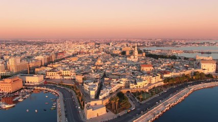 aerial view drone of bari city center old town at dawn,flying forward,apulia italy