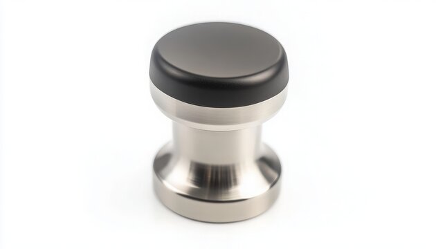 Stainless Steel Coffee Tamper on White Background for Barista Use - Perfect Tool for Espresso Preparation and Coffee Lovers, Ideal for Professional and Home Baristas Alike.