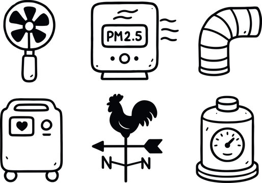 hand drawn cute doodle style isolated airflow anemometer air quality sensor ventilation duct oxygen concentrator wind vane barometric chamber