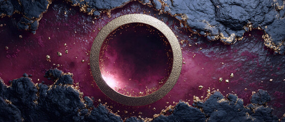 Golden barque ship with square sails on luxury abstract wave art background in gold line art style. Generative Ai