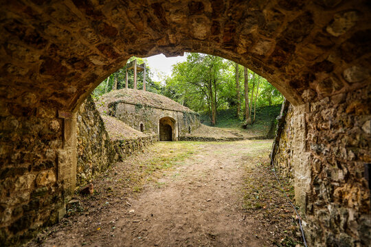 Vaulted passage in a barrack of the Fort de Sucy ("Sucy Fortress") built in 1879 following the Franco-Prussian War to defend Paris in the southeast of the capital in Sucy-en-Brie, France