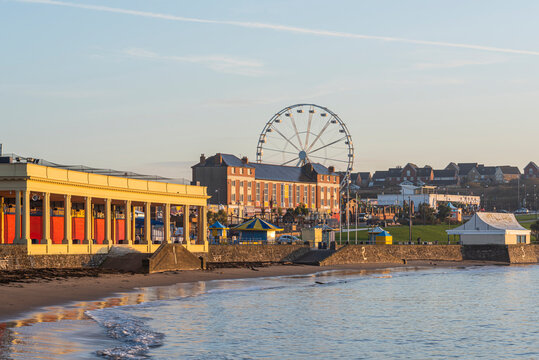 Aerial shot of Barry Island Fairground and Promenade on sunny day
