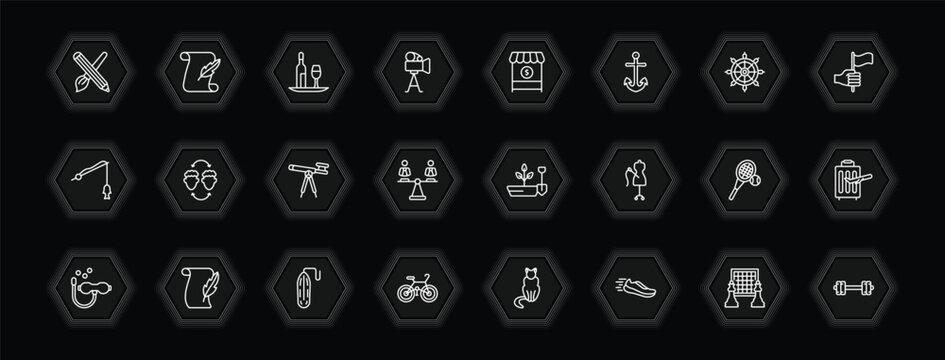 outline icons set - people skills concept. vector icons included interior de, bartender, seller, empathy and more.