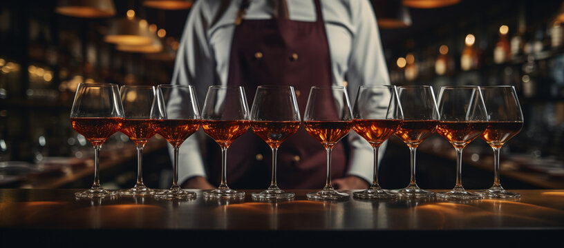 Masterclass by sommeliers in luxury restaurant. Wine and Dine Concept.