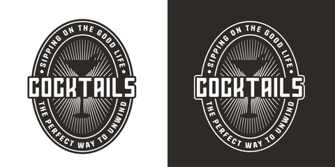 Martini cocktail with bartender hand for logo of alcohol cocktail bar
