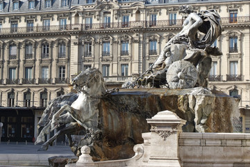 Bartholdi fountain at the Place des Terreaux square after restoration in Lyon France